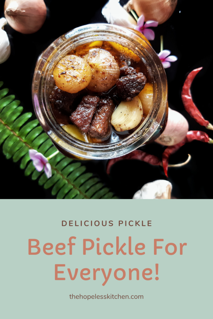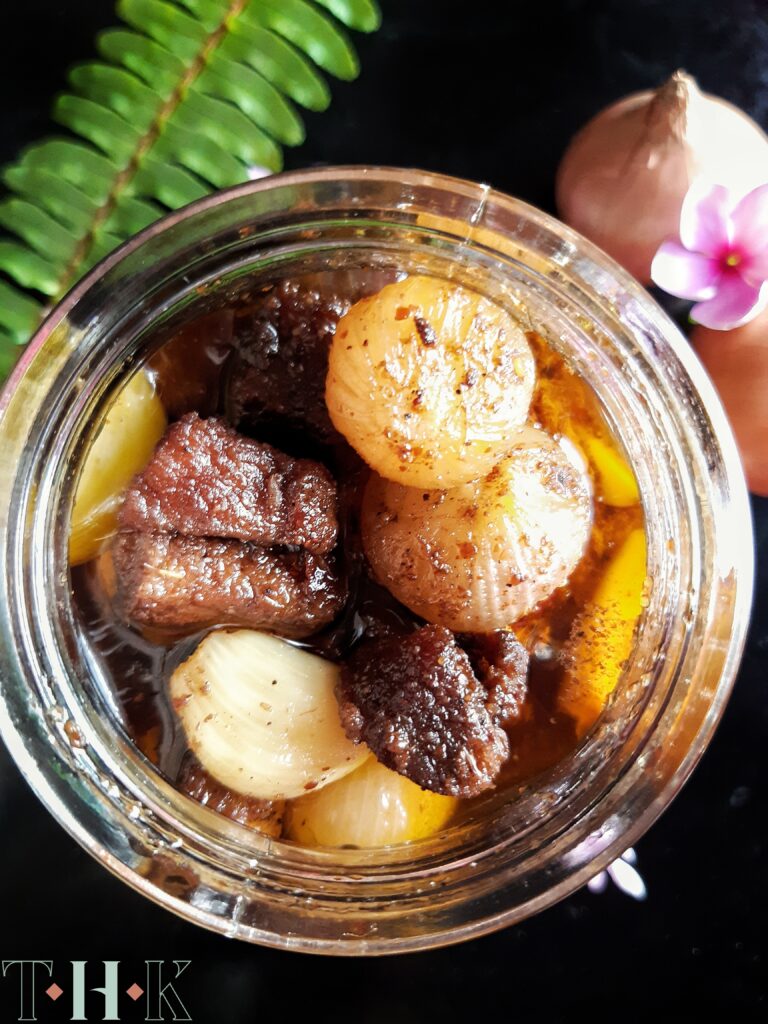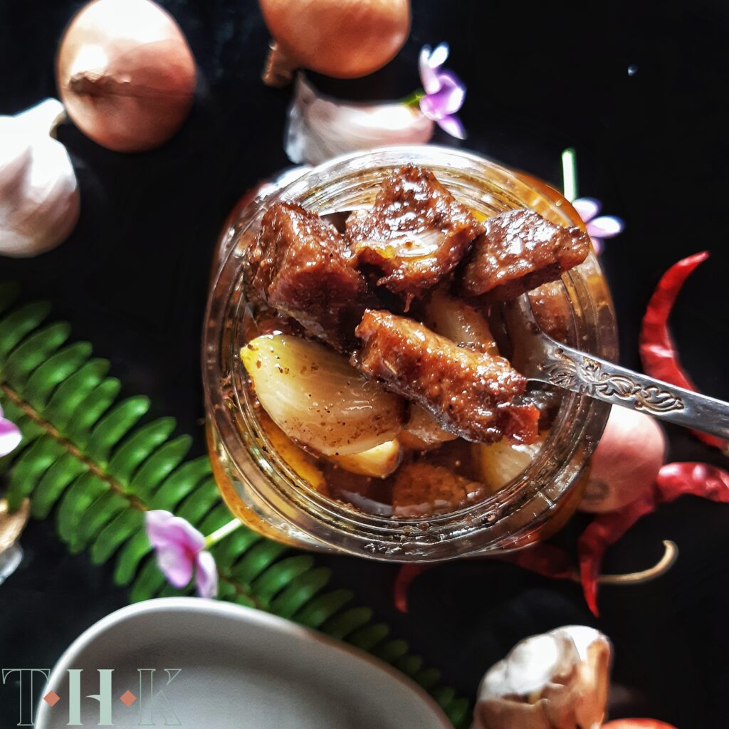 Beef aachar gives another kind of deliciousness. One advantage of making beef pickle, you can store it for a long time and eat it every day in a bit of amount. If unwanted guests come over and we have nothing cooked up yet, we can simply serve rice with beef aachar. That would be more than enough because of its richness, savory taste, and salivating smell. In our house, we eat this pickle immediately after cooking, and it is half-finished before putting it in the jar. HAHA. It is a genuine struggle to store the aachar for a long time in this household. But honestly, to have that intense flavor bomb, pickle needs to be stored at least for a week. This pickle can be eaten with white rice, polao, white bread, and parata. Let’s see how to make beef pickle.